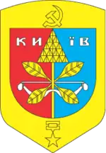 En 1957, bajo la Unión Soviética, se diseñó un nuevo emblema con hojas amarillas de castaño, un arco blanco y la palabra КИЇВ (KYIV que es 'KIEV' en ucraniano). Esta composición se encontraba situada sobre un fondo rojo, en su mitad derecha (izquierda del espectador) y azul en la derecha. Sobre el fondo descrito se podía observar el contorno de la hoz y martillo, el símbolo más conocido del comunismo. En la parte inferior se añadió, también sin colorear, la medalla del título de Ciudad Heroica.