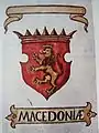 El escudo de Macedonia fue aprobado el 27 de julio de 1946 por la Asamblea del Pueblo de la República Popular de Macedonia. Tras la independencia en 1991 se estudió recuperar el antiguo escudo, un león heráldico de oro en un campo de gules, pero esta iniciativa no prosperó porque el antiguo escudo actualmente lo usan como símbolo algunos partidos políticos nacionalistas, la etnia albanesa del país lo rechaza como emblema nacional y los componentes del antiguo blasón figuran en la heráldica búlgara.
