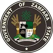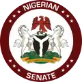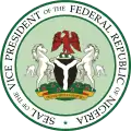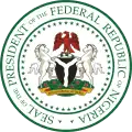 Es flanqueado por dos caballos de plata, un símbolo de dignidad, y timbrado por un burelete de plata y [[]] (los colores de la bandera nacional, en alusión a la riqueza agrícola de Nigeria) cimado de un águila de gules con las alas extendidas, que representa la fuerza.