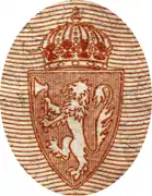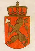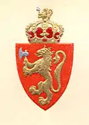 Cimera Real de Noruega. Un león rampante de oro sosteniendo un hacha. | |