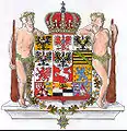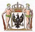 El así llamado 'armas medianas' fue entonces emitido: un escudo con los mismos cuatro escusones y diez cuarteles para Silesia, Renania, Posen, Sajonia, Pomerania, Magdeburgo, Jülich-Cleves-Berg, y Westfalia. Esto estaba rodeado por el Orden del Águila Negra y sostenido por dos hombres salvajes con garrotes.