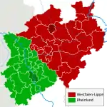 Blasón | Partido: 1 la anterior Provincia del Rin, 2 la anterior Provincia de Westfalia, y entado: el anterior Estado Libre de Lippe | |