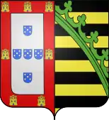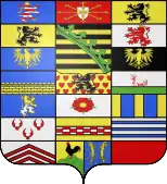 Blasón | Franjas horizontales de sable y oro, con un crancelín verde | |