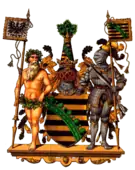 El escudo de armas de Sajonia muestra un campo partido nueve veces de franjas horizontales sable/negro y oro/amarillo,[1] cargado con una verde ruda en curva - según el espectador recorriendo de arriba a la izquierda a abajo a la derecha. Aunque el crancelín a veces es representado flexionado (doblado) como una corona, esto se debe a una licencia artística.[2] El escudo de armas también se muestra en la bandera del estado de Sajonia.[2]
