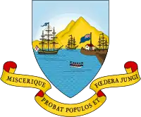Tenante | Un ibis escarlata, símbolo de la Isla Trinidad y un Cocrico, símbolo de Tobago. | |