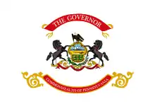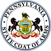 El Escudo de Armas de Pensilvania es un emblema oficial del Estado, junto con la bandera y el sello del Estado, y fue adoptado en 1778. El escudo de armas de Pensilvania dispone de un escudo crestado por un águila calva americana, flanqueado por dos caballos, y adornado con los símbolos de los puntos fuertes de Pensilvania - un barco que transportaba el comercio estatal a todas las partes del mundo; un arado de arcilla roja (un símbolo de los ricos recursos naturales de Pensilvania); y tres gavillas de trigo dorado, representando los fértiles campos y la riqueza del pensamiento y la acción humana de Pensilvania. Una rama de olivo y una caña de maíz aparecen debajo de la cruz - símbolos de paz y prosperidad. El lema estatal "Virtue, Liberty and Independendence" ("Virtud, Libertad e Independencia") aparece adornado debajo del escudo.