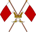 Tenante Halcón de Quraysh de oro con el vuelo de oro y plata, armado, picado y colado de plata.