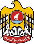 El escudo de armas de los Emiratos Árabes Unidos en su forma actual, fue adoptado oficialmente el 22 de marzo de 2008, en sustitución del anterior, que data de 1973. Es similar a otros escudos de los estados árabes y consiste en un halcón de oro, pero, del llamado Halcón de Quraysh que aparece en el emblema estatal de Siria o Libia.