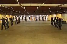 En el exterior, en una zona más apartada se encuentra el edificio de tiro, con 6 modernas galerías y clases anexas para la preparación de la asignatura de tiro. Se cuenta además con dos búnkeres de alta seguridad donde se almacenan las armas y municiones.