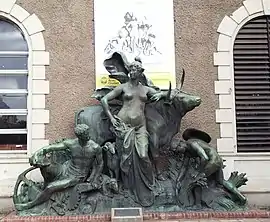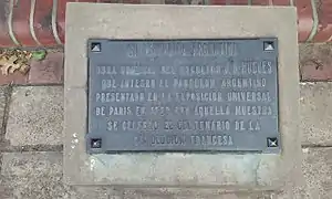 Con motivo de la expansión de la plaza General San Martín en el barrio de Retiro, la municipalidad desmontó el Pabellón Argentino entre 1932 y 1934. Una de las esculturas, la que simboliza La República Argentina, que integró el Pabellón Argentino presentado en la Exposición Universal de París (1889) donde se celebró con aquella muestra El Centenario de la Revolución Francesa, fue trasladada a la Escuela Técnica Raggio.