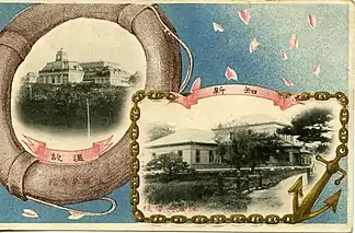 Las instalaciones originales de la Escuela de Guerra Naval fueron destruidas por el terremoto de Kantō de 1923. El 27 de agosto de 1932, sus instalaciones se trasladaron a Kamiōsaki.