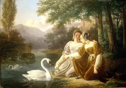 La Escuela de Lyon se formó a finales de la década de 1810 y, al inicio, comprendía más bien a los pintores comprometidos con la corriente de los Trovadores, aunque también a paisajistas o a aquellos que dibujaban motivos florales y sedas decorosas. En el Salón parisino de 1819, año en el que la Escuela de Lyon se da a conocer, su pintura es descrita como una corriente que tenía «un estilo cuidado y una ejecución fina y brillante».[4]