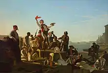 Los primeros directores de la academia Peter von Cornelius y Wilhelm von Schadow configuraron el orientación más estrecha de la institución docente inicial en el sentido del movimiento nazareno y del clasicismo. Los temas que ordenaron según la Jerarquía de los géneros clásicos incluían los de la mitología, el cristianismo, los temas históricos importantes y la pintura de paisaje. La corriente del Romanticismo se extendió cada vez más en Alemania y se abrió paso en la Academia. Sin embargo, bajo la influencia de Vormärz, el programa de la Academia y su entorno artístico pronto se ampliaron para incluir la amplitud de las corrientes románticas y otras, de modo que un realista, crítica social La Crítica social y la Pintura de paisaje y de género tuvieron más espacio y validez. Entre los temas y estilos pictóricos de la Malerschule se encuentran la pintura de historia, el paisaje, el género y la naturaleza muerta en todas las facetas representadas, que desempeñaron un papel en el bürgerlich arte determinado del siglo XIX.[4] A través de las críticas, las publicaciones y las exposiciones, de la difusión de las obras a través del mercado internacional del arte, especialmente a Londres, Ámsterdam, Bruselas, París, Chicago y Nueva York, de los viajes, de las amplias conexiones amistosas y familiares, y de las carreras académicas y profesionales, a veces globales, de sus protagonistas, la obra de la Escuela de Pintura de Düsseldorf irradió a lo largo y ancho, especialmente en el periodo comprendido entre 1830 y 1870, pero ciertamente también en las últimas décadas del siglo XIX. Los pintores formados en Düsseldorf transmitieron sus técnicas artísticas, actitudes, métodos de enseñanza, temas, topoi y discursos por todo el mundo, en otras Kunstakademien y en las emergentes Künstlerkolonie. La pintura de paisaje y de género de Düsseldorf fue durante muchos años líder y formadora de estilo.[5] La reputación internacional de la Escuela de Pintura de Düsseldorf entre las instituciones educativas artísticas de Alemania sólo fue superada de nuevo por la Bauhaus.[6].