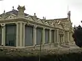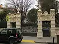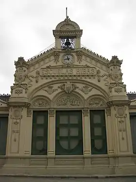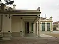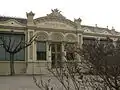 Las cubiertas de cada una de las naves son inclinadas y están hechas con tejas de cerámica vidriada de diferentes colores. Las puertas del jardín presentan decoraciones de hierro forjado, mientras que la decoración de los pilares es de tierra cocida con motivos florales.[4]