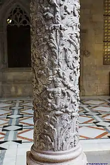 Así se observa, su empleo en el coro de la catedral de Tortosa, realizado por Cristóbal de Salamanca: