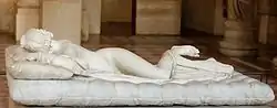Desde los orígenes de Roma, su escultura estuvo bajo la influencia griega. En primer lugar a través de la escultura etrusca, que fue una interpretación del arte del período arcaico de Grecia, y luego el contacto con las colonias griegas de la Magna Grecia del sur de la península itálica. Cuando los romanos comenzaron su expansión por el Mediterráneo, en sus campañas militares, saquearon varias ciudades donde había grandes colecciones de escultura helenística, entre ellas la próspera Siracusa dominada en 212 a. C. Según los relatos, el botín de guerra fue fantástico y fue llevado a Roma para adornar la capital, consiguiendo de inmediato el favor del público sobre la escultura de tradición etrusca. Este saqueo fue seguido por otros varios: Tarento en 209 a. C., Eretria en 198 a. C., Peloponeso en el año 196 a.C., el de Siria y Anatolia en 187 a. C., Corinto en 146 a. C., Atenas en 86 a. C. y Sicilia en 73-71 a. C., con unas apropiaciones de las obras de arte tan ávidas que a veces causaron indignación entre los mismos senadores romanos, como Catón que denunció estas formas de actuar y consideró que era una influencia negativa para el arte romano. El resultado fue cubrir Roma de arte helenístico y atraer para el nuevo poder diversos artistas, tales como Pasiteles, Sosikles y Policles, de este último, entre sus obras más conocidas se encuentra el Hermafrodito dormido, cuyo original de bronce está perdido, aunque se realizaron varias copias, la más famosa es el Hermafrodito Borghese encontrado en las Termas de Diocleciano a principios del siglo XVII y en la actualidad en el Museo del Louvre. Este grupo de artistas comenzaron a crear una escuela de escultura local, fundada con los principios del arte helenístico y fue la responsable de transmitir a la posteridad a través de copias una serie de famosas obras griegas y cuyos prototipos originales acabaron perdiéndose, al mismo tiempo, también desarrollaron tipologías típicamente romanas. Más tarde, la escultura clásica-helenista romana sería el vínculo de transición hacia el arte bizantino y para el desarrollo de la iconografía cristiana.[48][49][50][51]