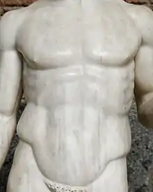 La escultura clásica griega fue el período inmediatamente anterior al helenismo, se construyó a partir de un sólido marco ético que tenía sus fundamentos en la época arcaica de la sociedad griega, donde la aristocracia gobernante había hecho para sí misma el ideal de areté, un conjunto de virtudes que deberían ser cultivadas para la formación de una moralidad fuerte y un carácter social apto, versátil y eficiente. Al mismo tiempo, se formuló el concepto de kalokagathia, que afirmaba la identidad entre la virtud y belleza. Al expresar estos conceptos en las formas plásticas, nació un nuevo canon formal, desarrollado por Policleto y el grupo de Fidias, que buscaba la creación de formas humanas al mismo tiempo naturalistas e ideales, a través de cuya belleza perfecta y equilibrada se pudiesen percibir las virtudes del espíritu.[13][14][15]
