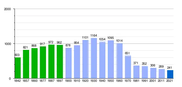 Población de derecho (1842-1897, excepto 1857 y 1860 que es población de hecho) según los censos de población del siglo XIX.[7] Población de derecho (1900-1991) o población residente empadronada (2001 y 2011) según los censos de población del INE.[7] Población según el padrón municipal de 2021 del INE. |