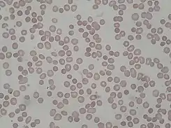 ![]() Frotis de sangre periférica de paciente con esferocitosis hereditaria | ||
