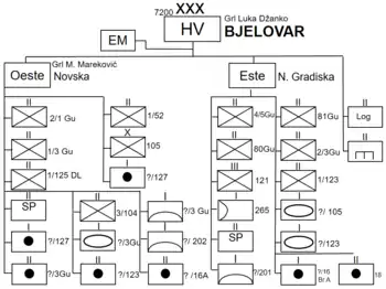 Bjelovar | Comando | 28.a División Partisana (Reserva. A movilizar) | 29 de septiembre de 1991[18] |