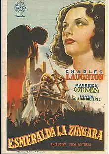 Esmeralda, la zíngara (en los Estados Unidos, The Hunchback of Notre Dame) es una película de drama histórico dirigido por William Dieterle y estrenada en 1939.[1] La actuación principal es de Charles Laughton, que encarna a Quasimodo, y Maureen O’Hara, que hace lo propio con Esmeralda. La película es una adaptación de la obra de Victor Hugo El Jorobado de Notre Dame. En la película se plasma la sociedad francesa del siglo XV, en la que Quasimodo es un joven jorobado deforme que toca las campanas de la catedral de Notre Dame. Esmeralda es una gitana que, en represenación de su pueblo, quiere reivindicar los derechos de su etnia ante el rey. Ambos marginados se conocen y Quasimodo queda embelesado por su belleza.[2]
