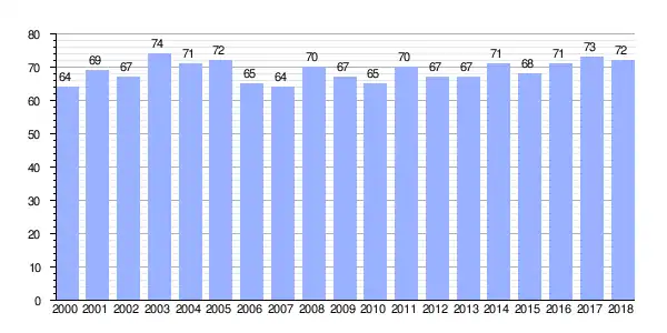 Gráfica de evolución demográfica de O Espírito Santo entre 2000 y 2018 |