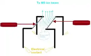 Los filamentos utilizados están hechos de tantalio (Ta), tungsteno (W), platino (Pt) o renio (Re). Convencionalmente, se utilizan dos filamentos en TIMS. Un filamento es para la muestra y se llama filamento de muestra. La muestra líquida se coloca en el filamento de muestra que luego se evapora para crear iones. Posteriormente, estos iones aterrizan en el otro filamento, también conocido como filamento de ionización. Aquí, el ion pierde un electrón por ionización.[4]