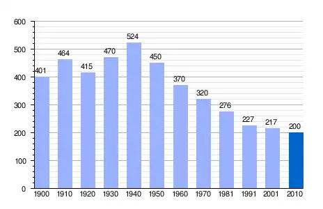 En 2010 la población asciende a 200 habitantes, 105 hombres y 95 mujeres.[3]