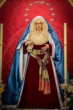 La imagen es una copia de la afamada Esperanza Macarena de Sevilla, siendo fruto de la devoción universal que recibe esta advocación. Fue realizada en 1941 por Antonio Eslava Rubio, para la Hermandad del Gran Poder y de la Esperanza Macarena, siendo una de sus titulares.