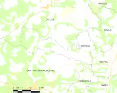 Espinas es una población y comuna francesa, en la región de Mediodía-Pirineos, departamento de Tarn y Garona, en el distrito de Montauban y cantón de Caylus.
