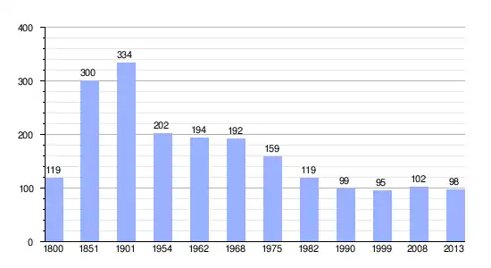 Gráfica de evolución demográfica de Esplantas entre 1800 y 2013 |