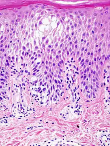 Espongiosis es un término que se emplea en medicina para describir la existencia de edema intercelular en la capa de células de la piel llamada capa de Malpigio o capa esponjosa. La espongiosis puede observarse en numerosas enfermedades que afectan a la piel.[1] [2] [3] [4]