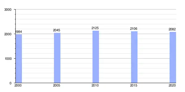 Gráfica de evolución demográfica de Esporiz (aldea) entre 2000 y 2020 |