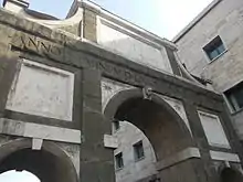 - Porta Maggiore, entre el Piazzale Labicano y la Piazza di Porta Maggiore. Puerta del siglo I de las murallas aurelianas. La gran estructura actual con dos arcos es lo que queda de la muestra de agua en la que convergían ocho de los acueductos que alimentaban Roma, en particular el acueducto Claudio. Incorporada en las murallas aurelianas en 272, se renombró Porta Praenestina (todavía hoy la Via Prenestina sale de allí). Recibió el nombre de Porta Maggiore durante la Edad Media, presumiblemente porque desde allí se iba hacia Santa Maria Maggiore.