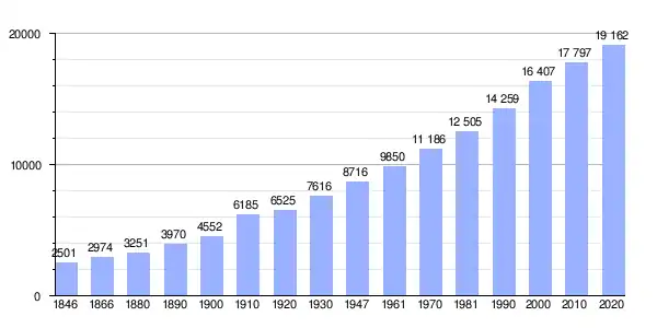 Todos los datos históricos relativos al actual municipio, el siguiente gráfico refleja su evolución demográfica, incluyendo municipios después de efectuada la fusión el 1 de enero de 1977.