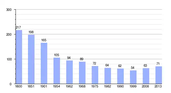 Los datos demográficos contemplados en este gráfico de la comuna de Essia[4] se han cogido de 1800 a 1999 de la página francesa EHESS/Cassini, y los demás datos de la página del INSEE.[5]