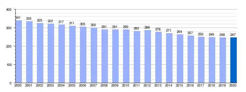 Gráfica de evolución demográfica de Estébanez de la Calzada[3] entre 2000 y 2020 |