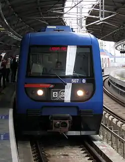 ![]() Alstom metropolis llegando a la estación | |||||||||