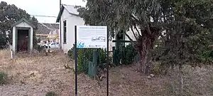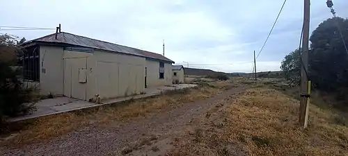![]() Vista de la estación desde la ruta y su cartel nominador, hoy desaparecido | |||||||||