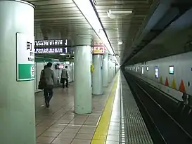 ![]() Andenes de la estación, de la línea Chiyoda. | ||||||||||||||||