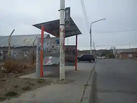 Se accede al plataforma mediante un cordón. La estación incluye carteles informativos sobre el servicio y la combinaciones posibles. La parada está cubierta y cuenta con asientos de madera, rampas para facilitar la subida y paredes laterales con el fin de resguardar del viento.