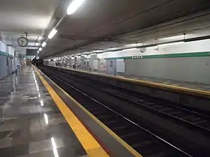 Está situada en la avenida Francisco Javier Mina - bajo la cual corre dicha línea 2, entre las calles Juan R. Zavala y Pedro Celestino Negrete.