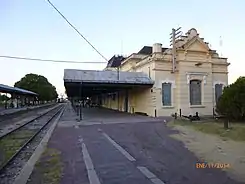 La llegada del tren a la ciudad tuvo lugar el 29 de septiembre de 1889. La estación en sus comienzos se conformaba por 2 casillas de madera. Luego el 2 de febrero de 1911 se inaugura el edificio actual, el depósito de locomotoras y la mayoría de las viviendas para el personal.
