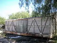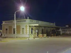 - Talleres para máquinas, coches y vagones,:[14] Uno de los talleres era el de carpintería y se encargaba de la reparación de las locomotoras y de los vagones.[15] Aquí también estuvo la jefatura y la gerencia del ferrocarril, que aún se encuentra en pie.[14]