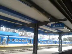 Andén 2 | ←←Trenes comunes y rápidos a J. C. Paz/Pilar/Cabred (próxima Palermo) |