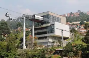 Es una estación intermedia del MetroCable de Nuevo Occidente, ubicad en la Línea "J" del Sistema de Transporte Masivo del Valle de Aburrá (Metro de Medellín), Esta estación de MetroCable abarca, las comunas 13 (San Javier) y 7 (Robledo), y el corregimiento de San Cristóbal