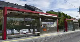 ![]() Vista general de las marquesinas situadas en el andén central de la estación. | ||