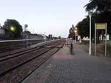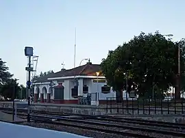 El complejo ferroviario se encuentra situado al este de la población. No conserva su edificio de viajeros original, que ha sido sustituido por uno de aspecto funcional y planta baja. En una de sus fachadas cuenta con un soportal formado por cuatro arcos de medio punto. Dispone de dos andenes, uno lateral y otro central al que acceden tres vías numeradas como vías 2 (andén lateral), 1 y 3 (andén central).[1] A estas tres vías hay que unir otras cuatro más que acaban en toperas.[1]