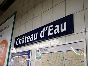 Situada cerca de la calle du Château d'Eau la estación debe su nombre a una antigua fuente que sirvió de torre de agua hasta 1867 fecha en la que fue sustituida por otra fuente.