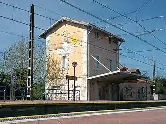 ![]() Vista general de los andenes de la estación y del edificio de viajeros. | |||||||||